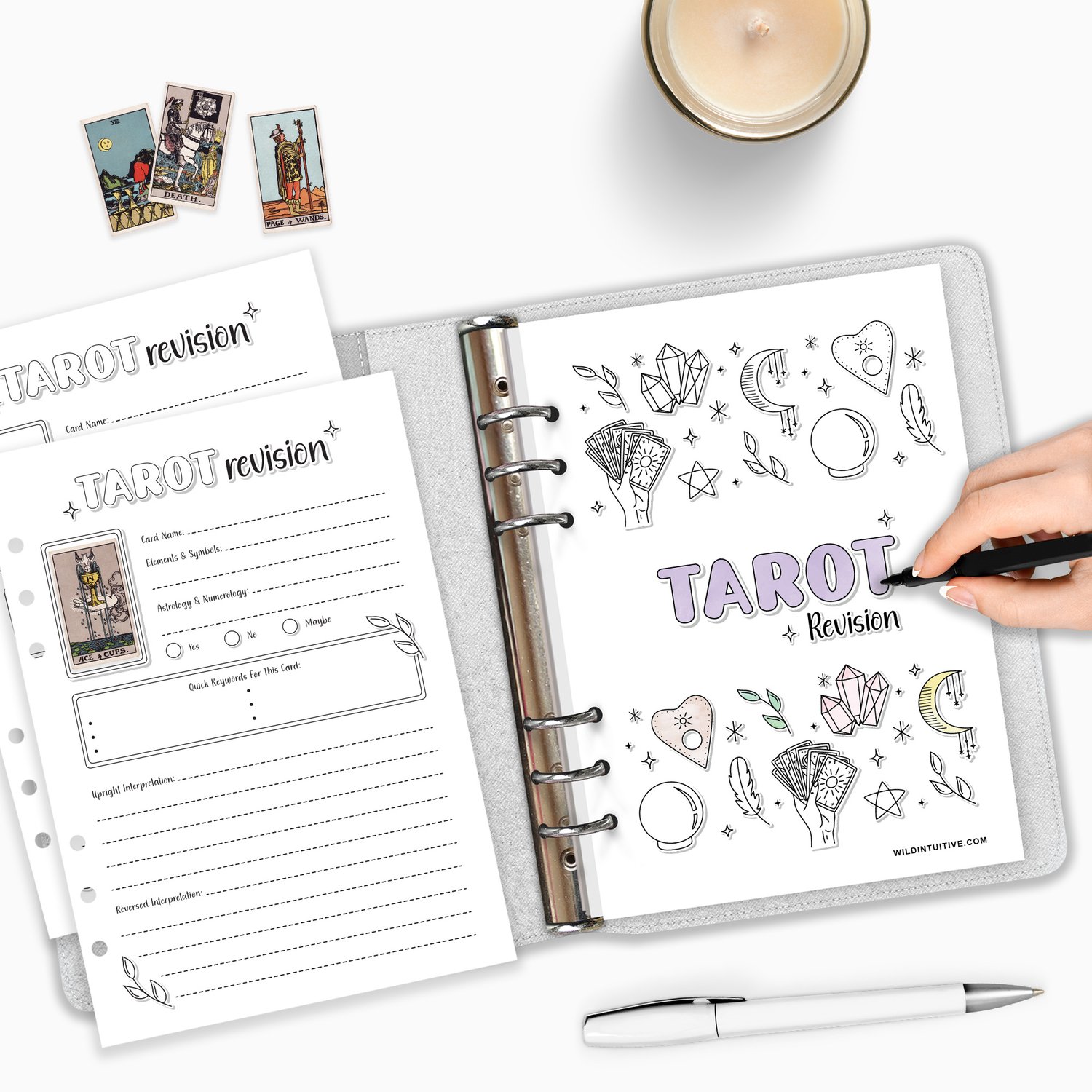 Tarot Journal – 78 Tarot Card Revision & Learning Pages | A5 Customisable Colour-In Journal on Premium Cardstock + Printable Rider-Waite Stickers.